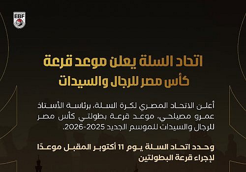 السبت 11 أكتوبر موعدًا لقرعة كأس مصر رجال وسيدات